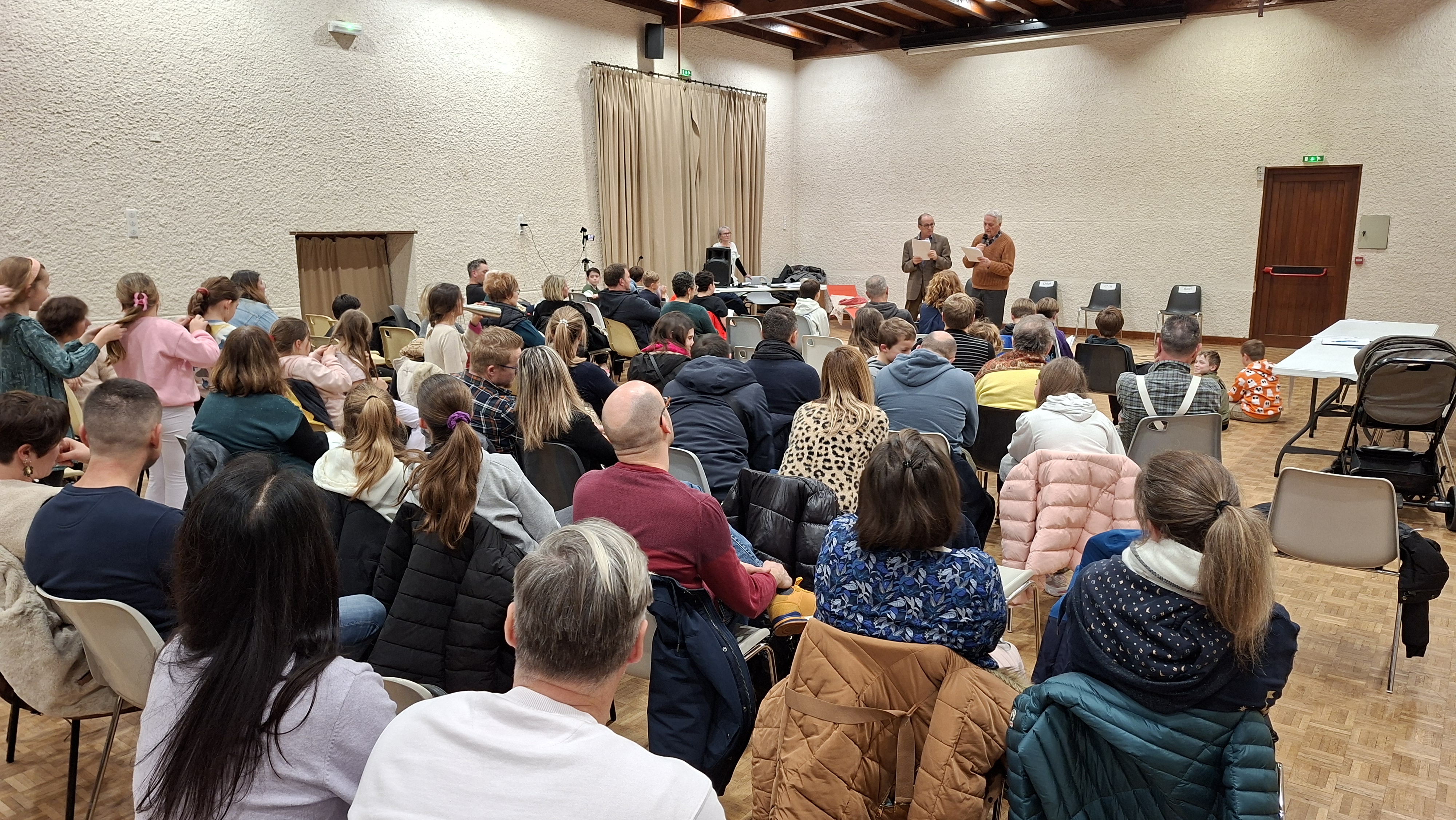 Les enseignants des classes de CM1 et CM2 ont présenté les finales communales des "Petits Champions de la Lecture" avec Chloé, Ilina, Abel et Chris. Les enfants, soutenus par leurs copains ont lu des textes qu'ils avaient choisis. Le jury a eu une tâche très compliquée pour départager ces enfants qui ont mis tout leur coeur pour transmettre aux spectateurs le plaisir de lire avec beaucoup d'émotion ! Bravo à eux quatre, ils ont mérité les applaudissements nourris qui ont salué leurs performances. Ce sont Chloé et Abel qui représenteront Saint-Gence à l'occasion des finales départementales.