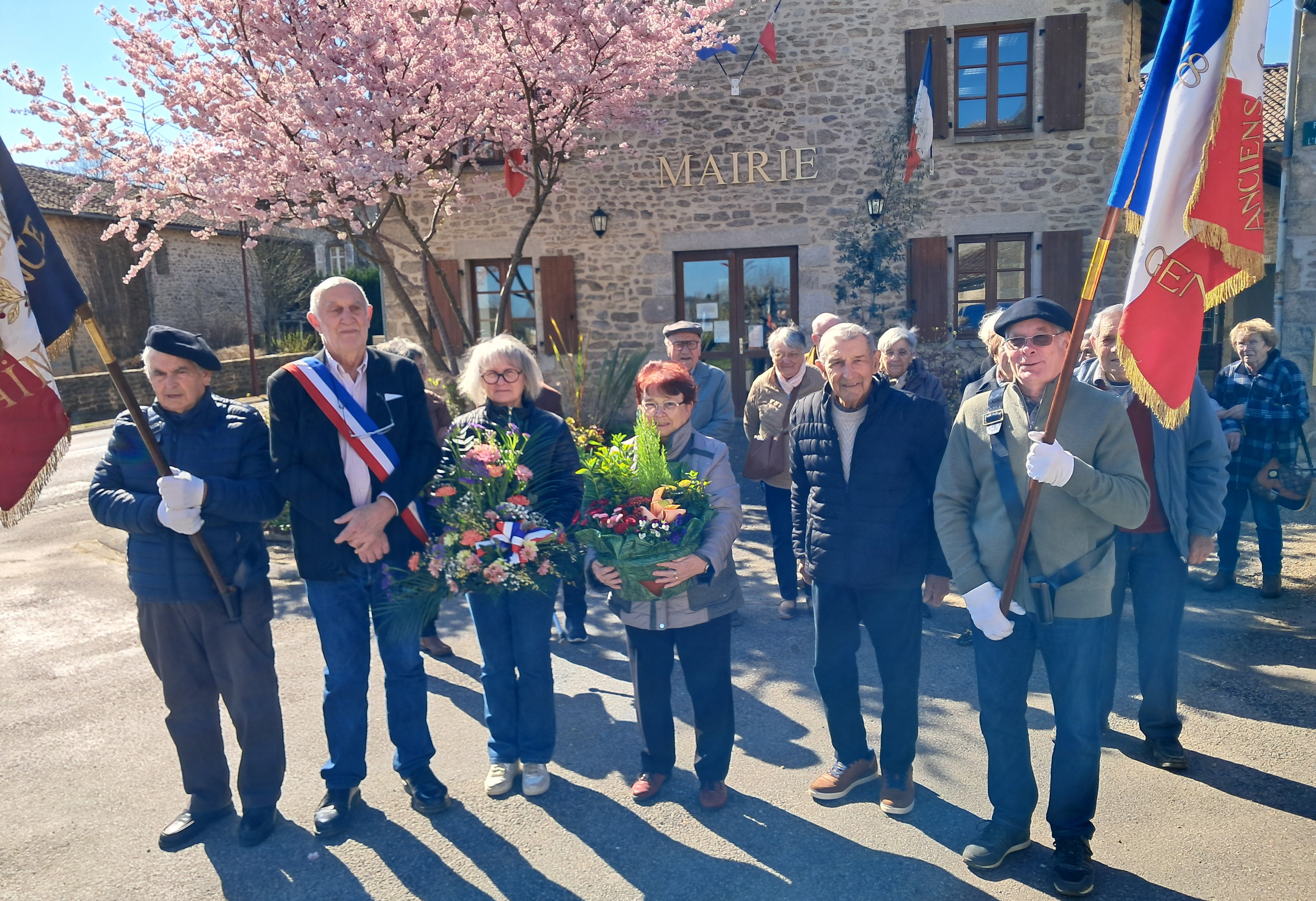 Deux gerbes offertes par la municipalité et la FNACA étaient déposés au pied du monument aux morts.