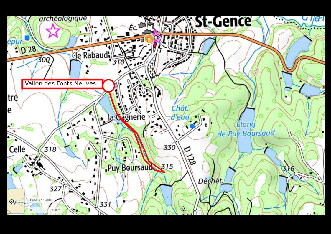 Il est situé à proximité immédiate du bourg de Saint-Gence …