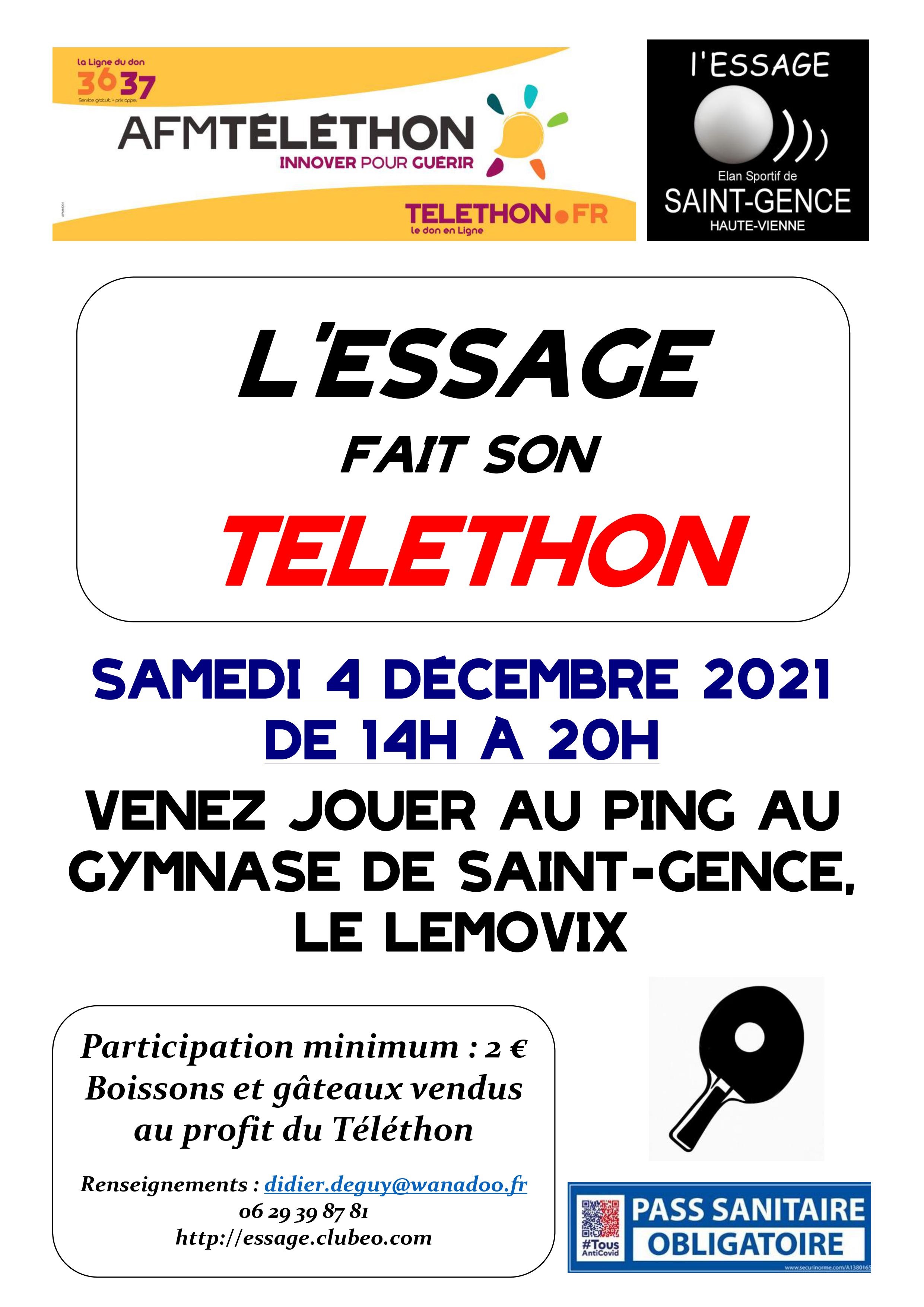 Actualité Quel succès ! Les canards n'arrivent pas par la poste Publié le 16/11/2025 Récompenses des lauréats du concours des Maisons Fleuries Publié le 15/11/2025 Bordeaux-Lyon : une ligne SNCF mythique ! Publié le 14/11/2025 Telethon 2021 : l'ESSAGE participe ! Dans le cadre du Téléthon 2021, venez jouer au Ping samedi 4 décembre de 14h00 à 20h00 au gymnasee Le Lemovix de Saint-Gence ! clic pour le site ESSAGE publié le 22/11/2021 http://saint-gence.fr/actualite/index.php?id=236 1649 Publier Partager Chargement...