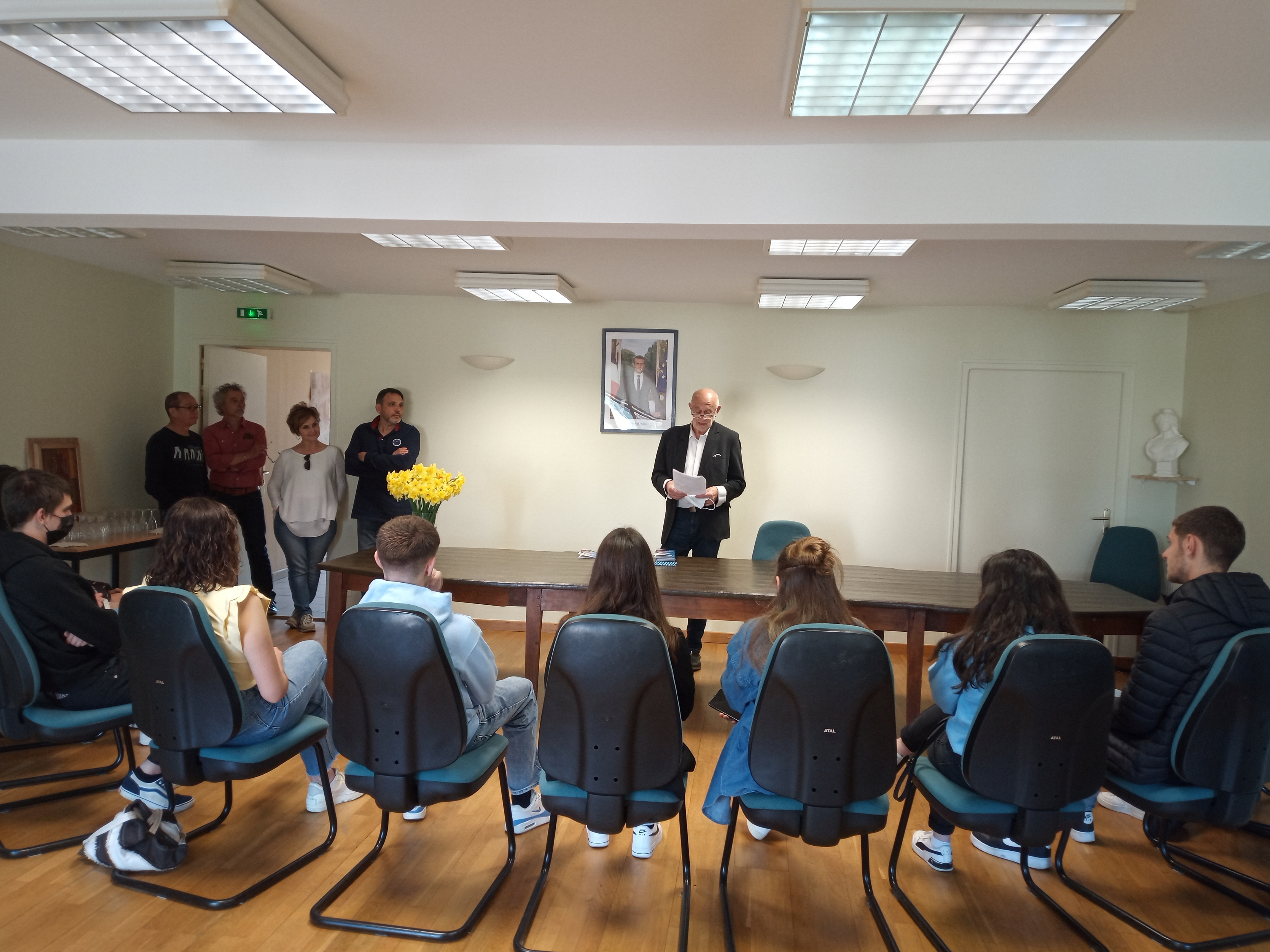 Le Maire, Serge Roux, entouré de nombreux élus recevait les jeunes futurs électeurs de la commune.