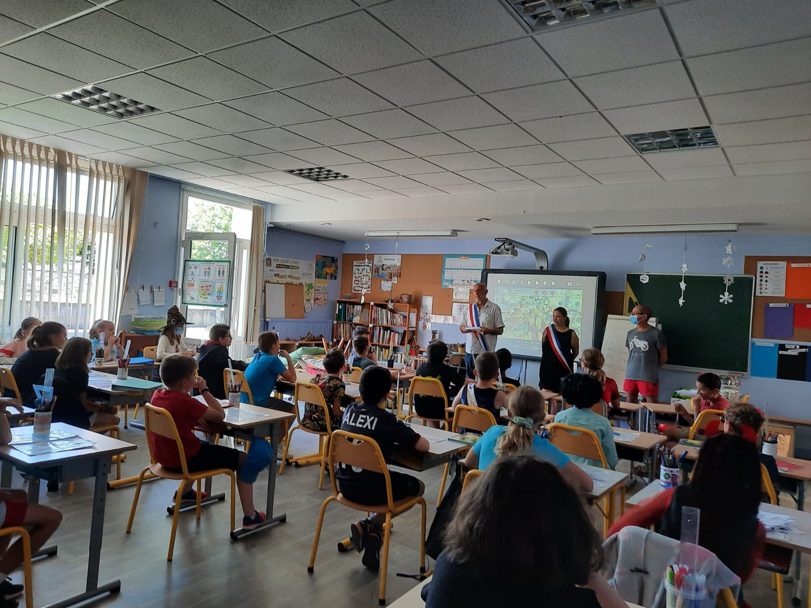 Serge Roux, Maire, accompagné de Cécile Fougeras et de Jean-Luc Dufour, maire-adjoints, rappelait combien l'enfance constituait pour la municipalité la priorité des priorités et souhaitait à tous de passer de bonnes vacances avant d'intégrer une classe de 6ème au collège.