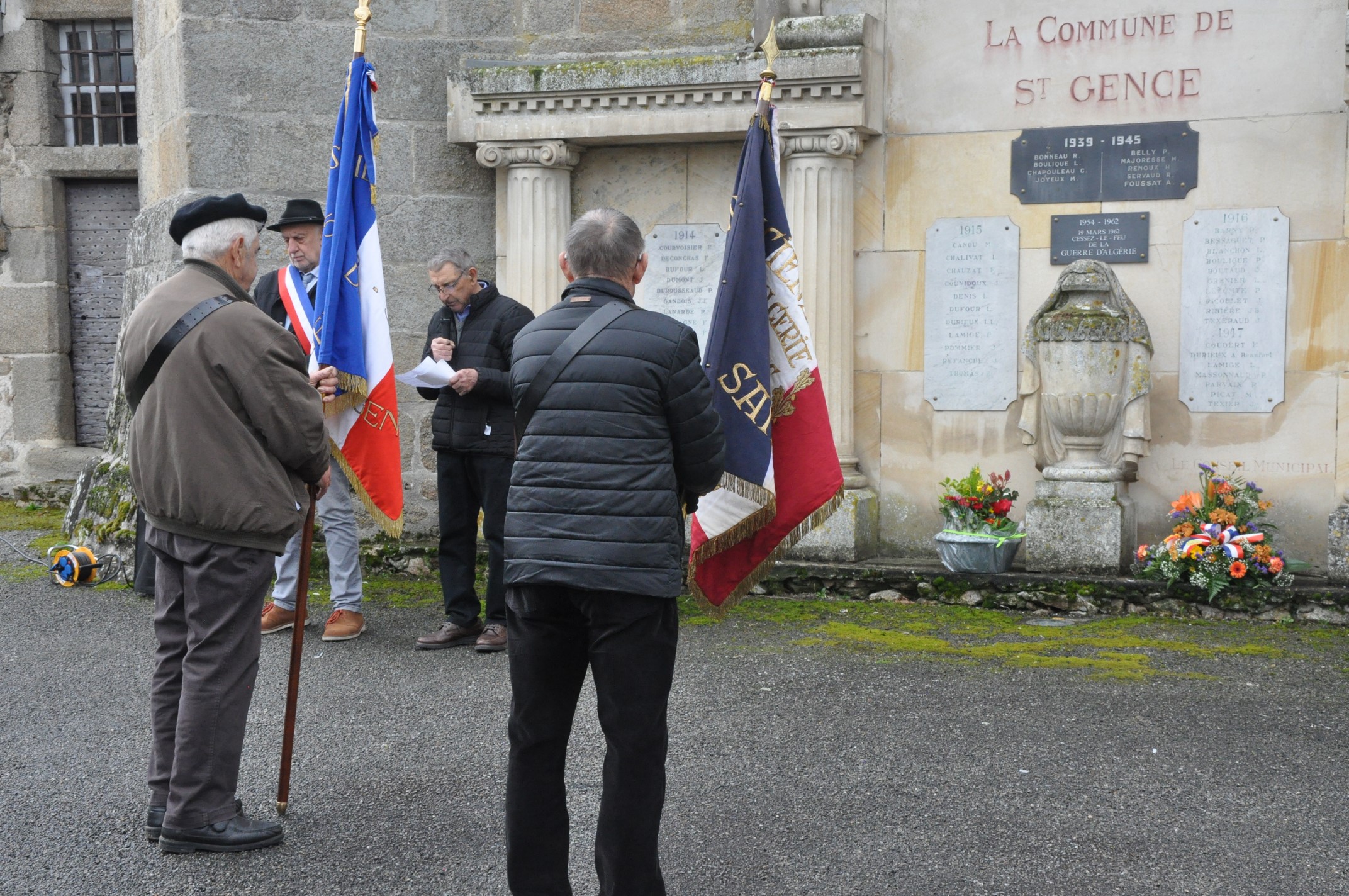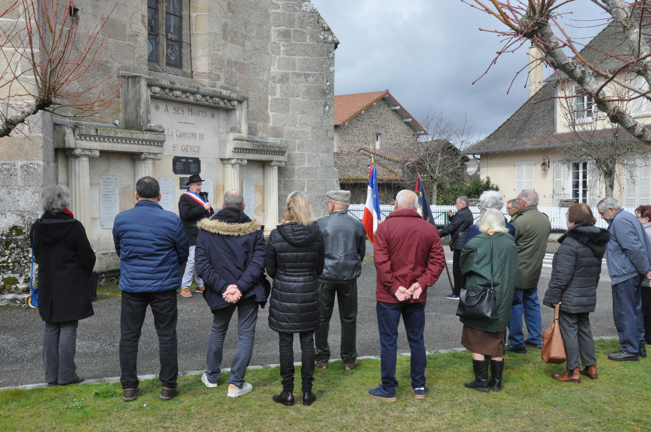 Il faisait observer une minute de silence à la mémoire de tous les morts ou disparus de cette guerre et soulignait ensuite le rôle majeur que joue la FNACA au plan national et le Comité de Saint-Gence, présidé par Roger Mérigaud au plan loctal dans l'indispensable saugegarde de la mémoire.