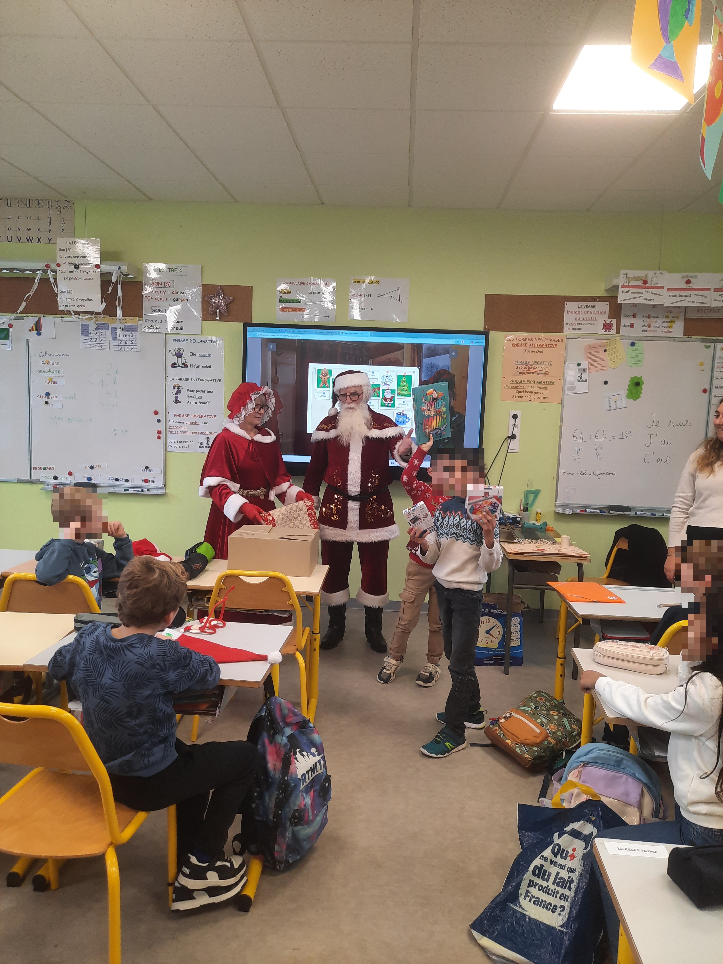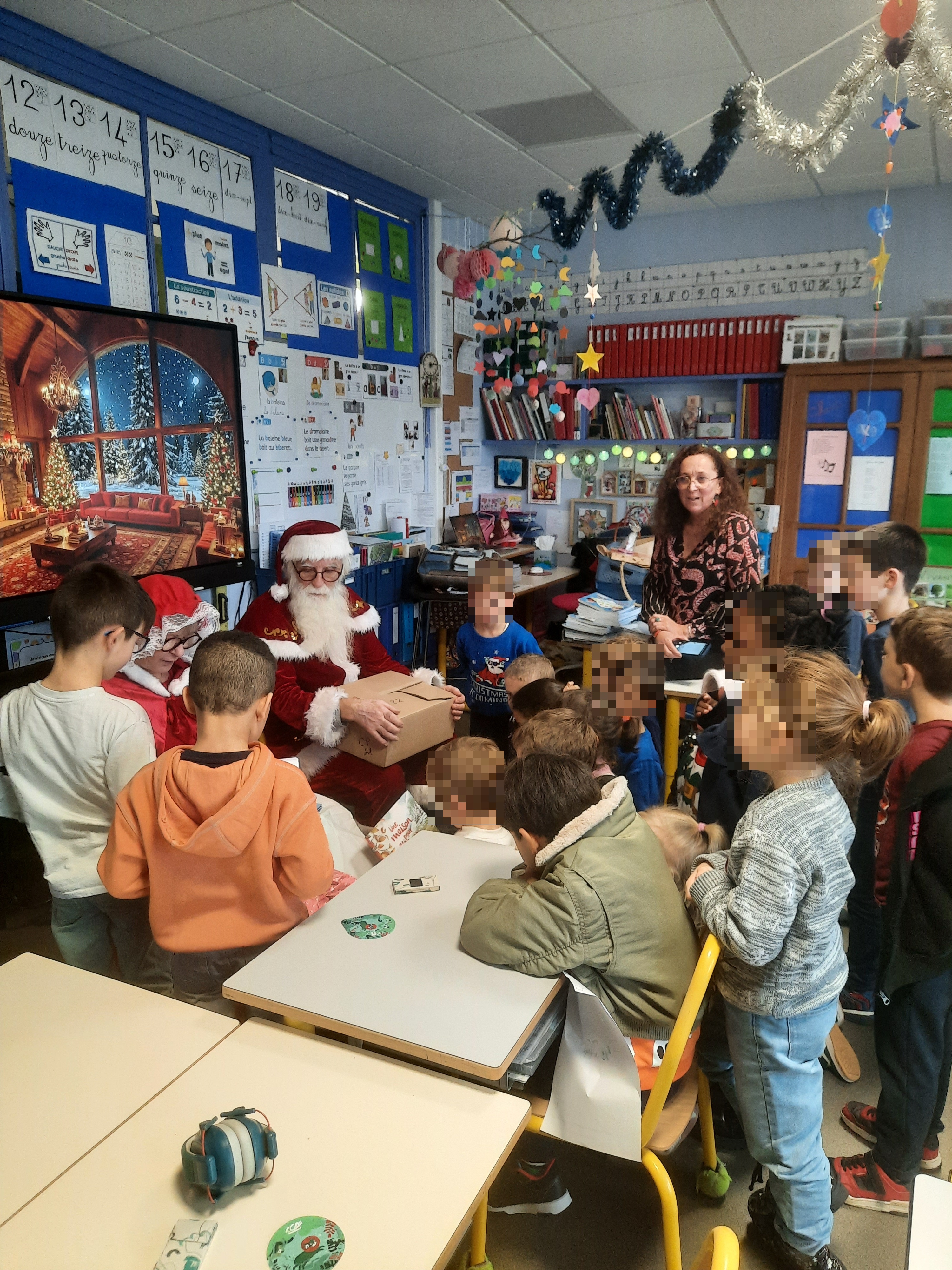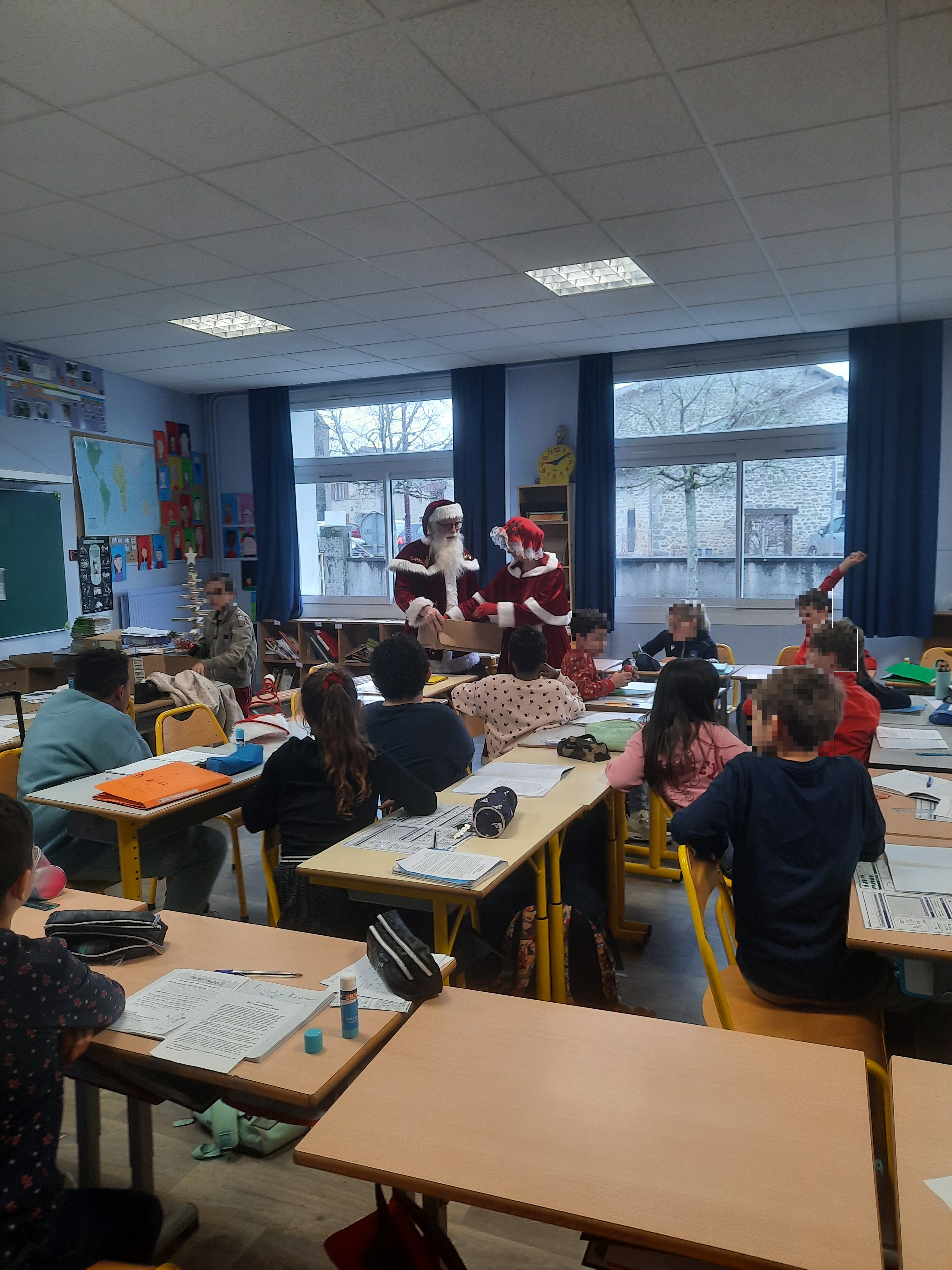 Ils n'étaient pas venus les mains vides puisqu'ils ont apporté des cadeaux dans chaque classe de la maternelle et de l'élémentaire !