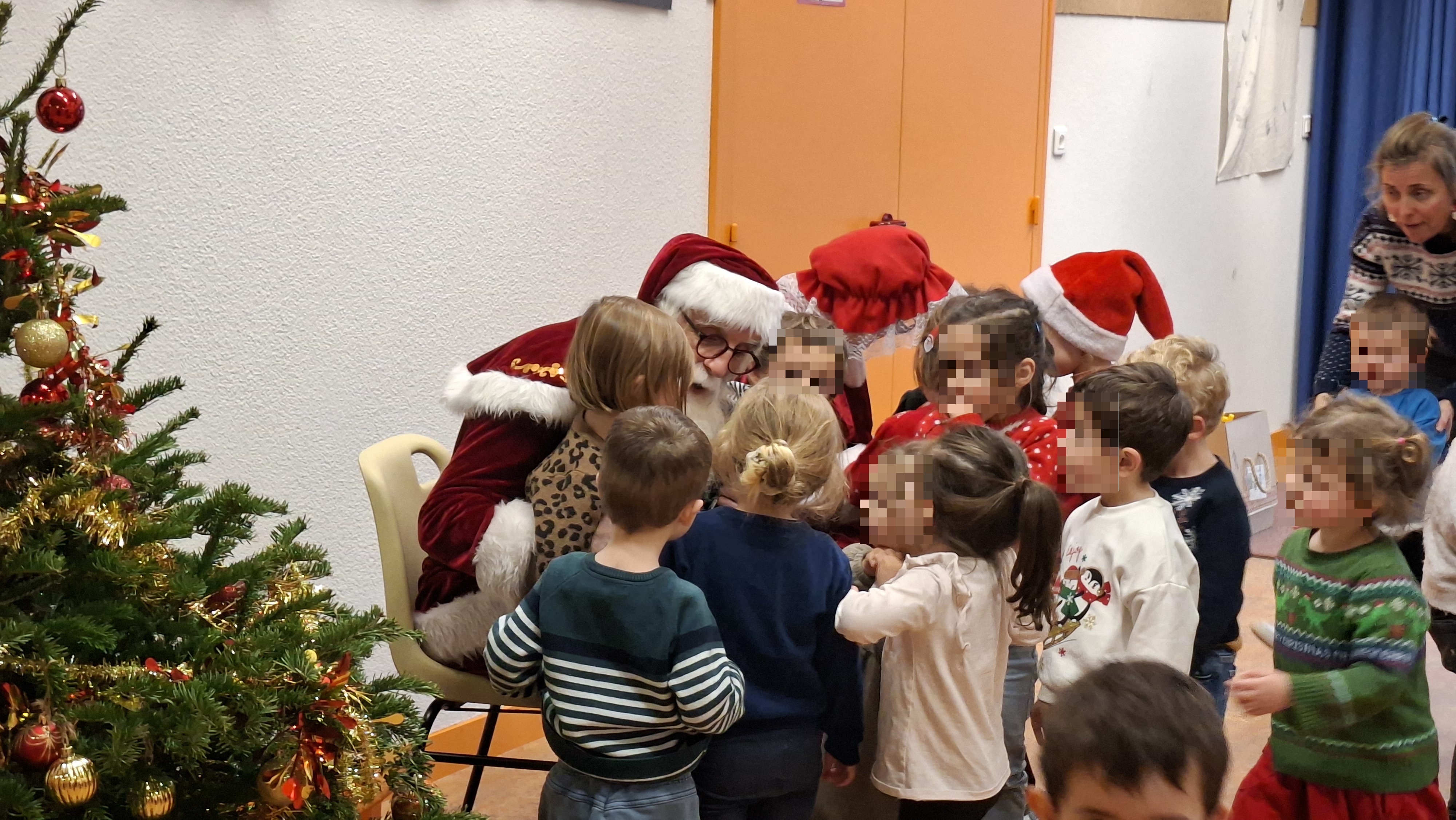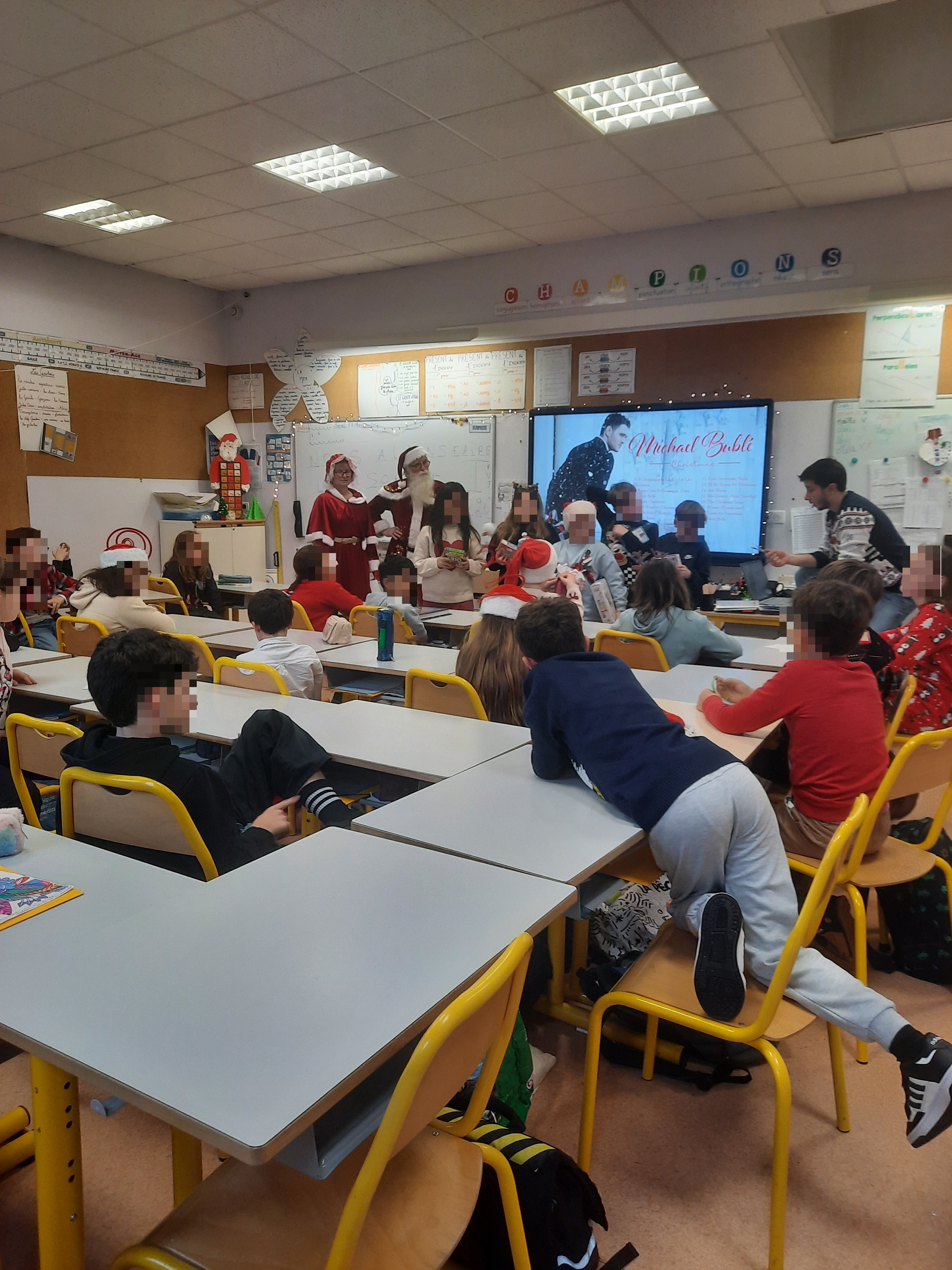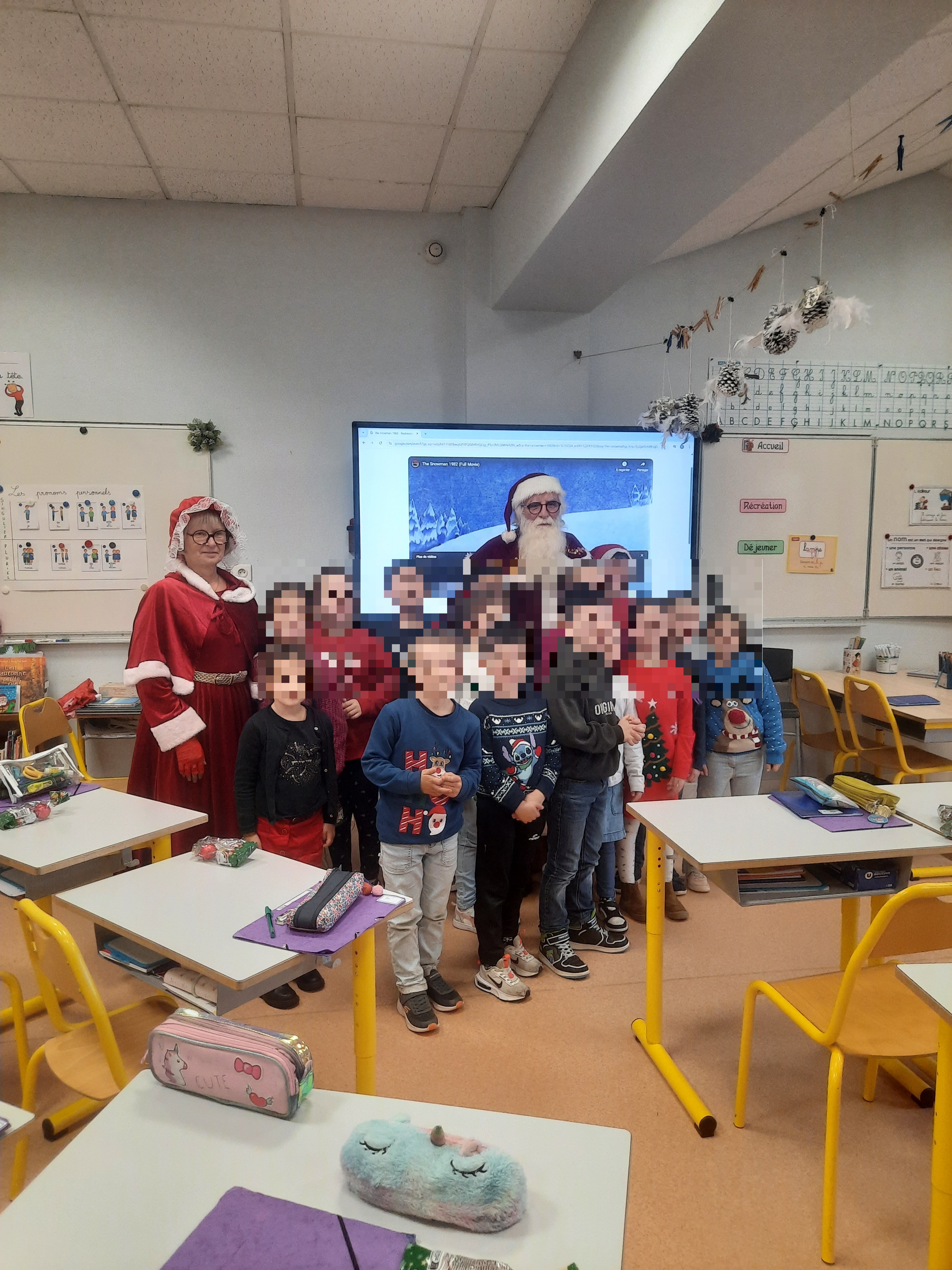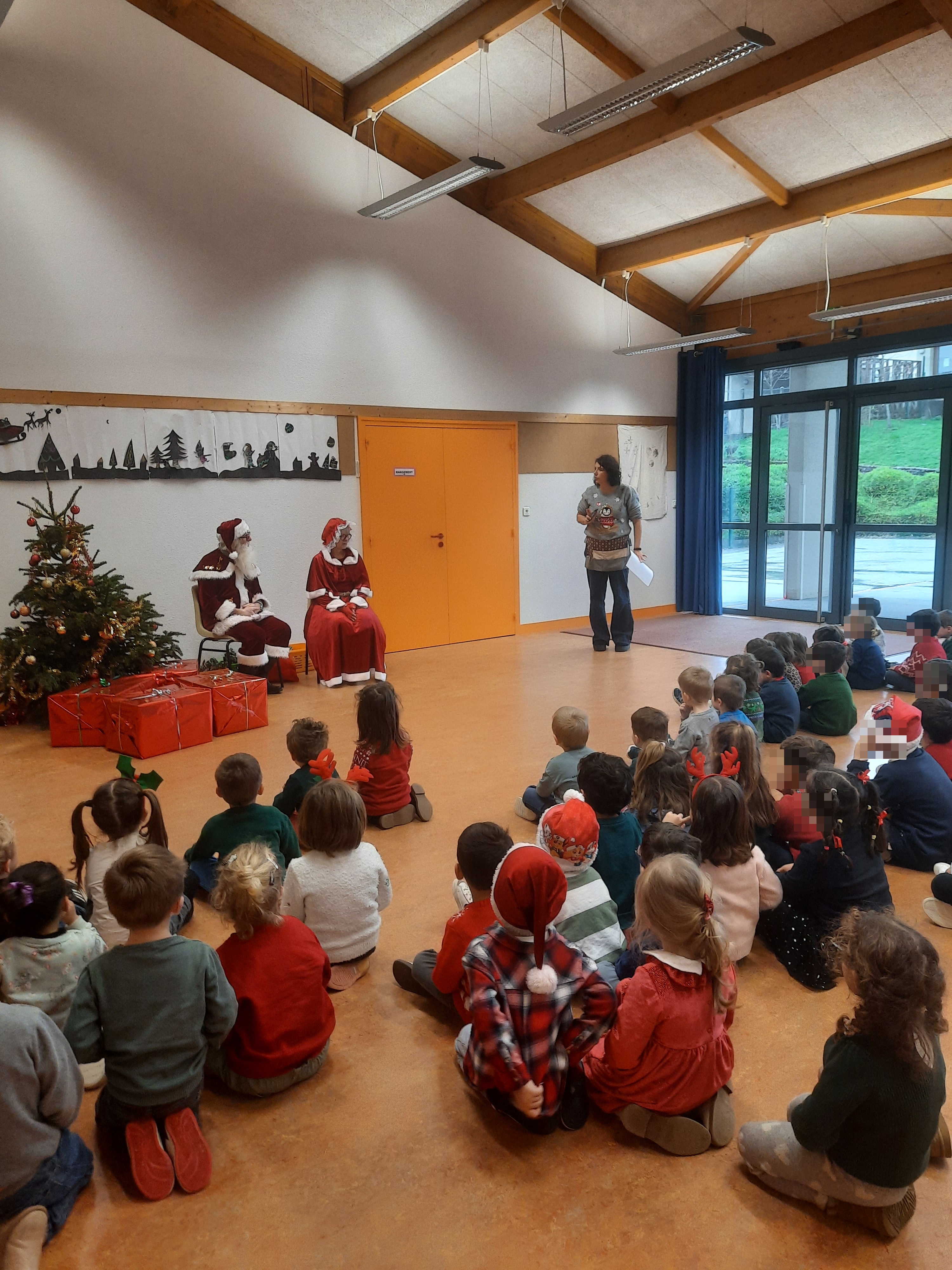 Ils n'étaient pas venus les mains vides puisqu'ils ont apporté des cadeaux dans chaque classe de la maternelle et de l'élémentaire !