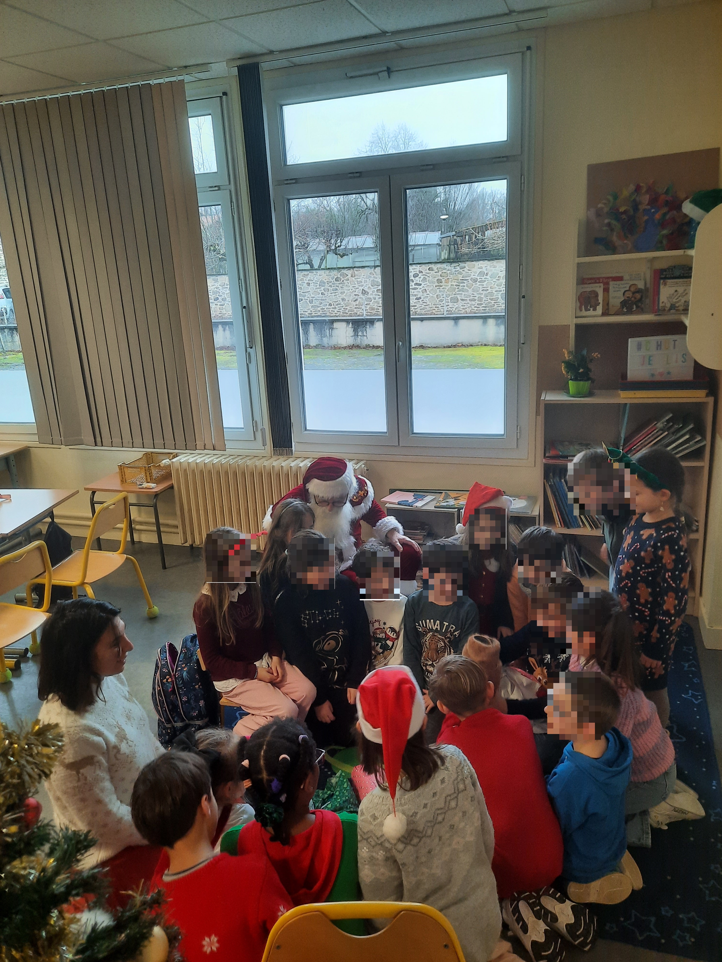 Pour le derrnier jour d'école avant les vacances d'hiver, les enfants des écoles de Saint-Gence ont eu la surprise et le bonheur de voir arriver le Père Noël et la Mère Noël !