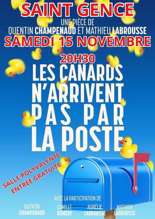 SAMEDI 15 NOVEMBRE THÉÂTRE GRATUIT A ST GENCE :