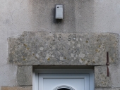 Commentaire descriptif : Le logis présente trois travées avec la porte sur la travée centrale. Le linteau de la porte est décoré d'un compas, d'une équerre et de deux branches de végétaux. Matériau(x) de gros-oeuvre et mise en oeuvre : gneiss ; granite ; moellon ; enduit partiel Matériau(x) de couverture : tuile creuse Vaisseau(x) et étage(s) : sous-sol ; 1 étage carré ; comble à surcroît Parti d'élévation extérieure : élévation à travées Type de la couverture : toit à longs pans ; croupe Représentation : chronogramme ; compas ; équerre ; ornement végétal Inscription(s) portée(s) sur l'édifice : 1858 Typologie : 6.