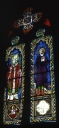 Commentaire descriptif : Vitrail 1 : deux lancettes, un quadrilobe supérieur, deux écoinçons latéraux. Catégorie(s) technique(s) : vitrail Matériau(x) et technique(s) : verre transparent (coloré) : peint ; plomb (réseau) Précisions sur la représentation : Saint : saint Damas. Dimensions : h = 408 ; l = 180 Etat de l'oeuvre : grillage de protection Précisions sur l'état de l'oeuvre : Inscriptions et couleurs estompées par endroits. Marques, inscriptions, emblématique, poinçons : inscription donnant l'identité du modèle ; signature ; inscription concernant le lieu d'exécution Précisions sur les inscriptions : STUS DAMATIUS P.P. ; EGO VOBIS CUM SUM UNUSQUE AD CONSUMATIONEM SAECULI ; STUS GENTIUM ; ARMES DE PIE IX ; ASSUMPTA EST CAELUM. Vitrail 1 (lancette de gauche) : saint Damas au registre supérieur, armoiries de la papauté au registre inférieur. Vitrail 1 (lancette de droite) : saint Gentien au registre supérieur, scène champêtre relative à la vie de saint Gentien au registre inférieur. Dans les quadrilobes surmontant la composition, des motifs végétaux stylisés. Vitrail 2 : l'Assomption de la Vierge. Vitrail 3 : saint Joseph.