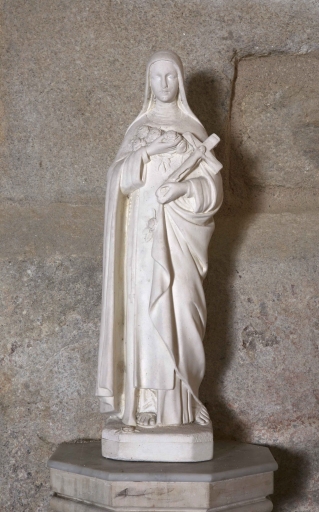 Saint-Gence, Présentation des objets mobiliers de l'église paroissiale Saint-Gentien | Statuette de sainteThérèse de Lisieux (détail). 19e siècle. Plâtre blanc. Chapelle latérale sud. |
