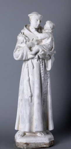 Saint-Gence, Présentation des objets mobiliers de l'église paroissiale Saint-Gentien | Statuette de saint Antoine de Padoue. 20e siècle. Plâtre blanc. Conservée dans une niche du mur nord de la nef, à droite du maître-autel. |