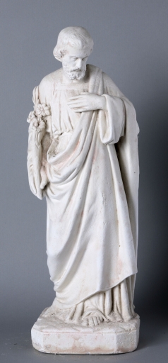 Saint-Gence, Présentation des objets mobiliers de l'église paroissiale Saint-Gentien | Statuette de saint Joseph. 20e siècle. Plâtre blanc. Conservée dans la chapelle latérale nord. |